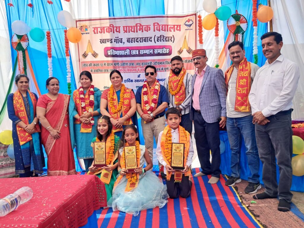 बहादराबाद। राजकीय प्राथमिक विद्यालय, खाण्ड गांव में आज प्रतिभाशाली छात्र-छात्राओं के सम्मान में एक भव्य समारोह का आयोजन किया गया। कार्यक्रम में मुख्य अतिथि के रूप में बहादराबाद ब्लॉक प्रमुख श्रीमती आशाबाला नेगी तथा विशिष्ट अतिथि के रूप में खण्ड शिक्षा अधिकारी/उप शिक्षा अधिकारी श्री भानु प्रताप शर्मा उपस्थित रहे।