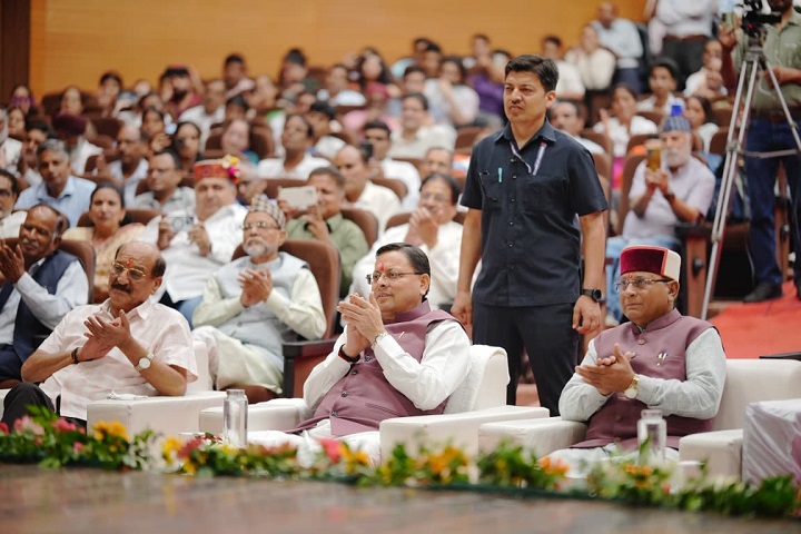 मुख्यमंत्री श्री पुष्कर सिंह धामी ने रविवार को हिंदी दिवस के अवसर पर आई०आर०डी०टी० सभागार, सर्वे चौक, देहरादून में आयोजित ‘उत्तराखंड दीर्घकालीन साहित्य सेवी सम्मान समारोह’ में प्रतिभाग किया और प्रदेश व देश भर से पधारे साहित्यकारों, कवियों तथा भाषा प्रेमियों को संबोधित किया।