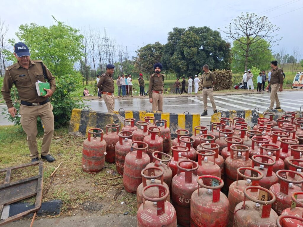 प्राप्त जानकारी के अनुसार ट्रक संख्या UP14 KT 4157 अचानक दिशा बदलते समय पीछे से आ रही हरियाणा रोडवेज बस संख्या HR62 GV 9198 से टकरा गया। टक्कर लगने के बाद ट्रक सड़क पर पलट गया और उसमें भरे सिलेंडर चारों ओर फैल गए। सूचना मिलते ही पुलिस मौके पर पहुंची और बिखरे सिलेंडरों को सुरक्षित तरीके से एकत्रित कराया।