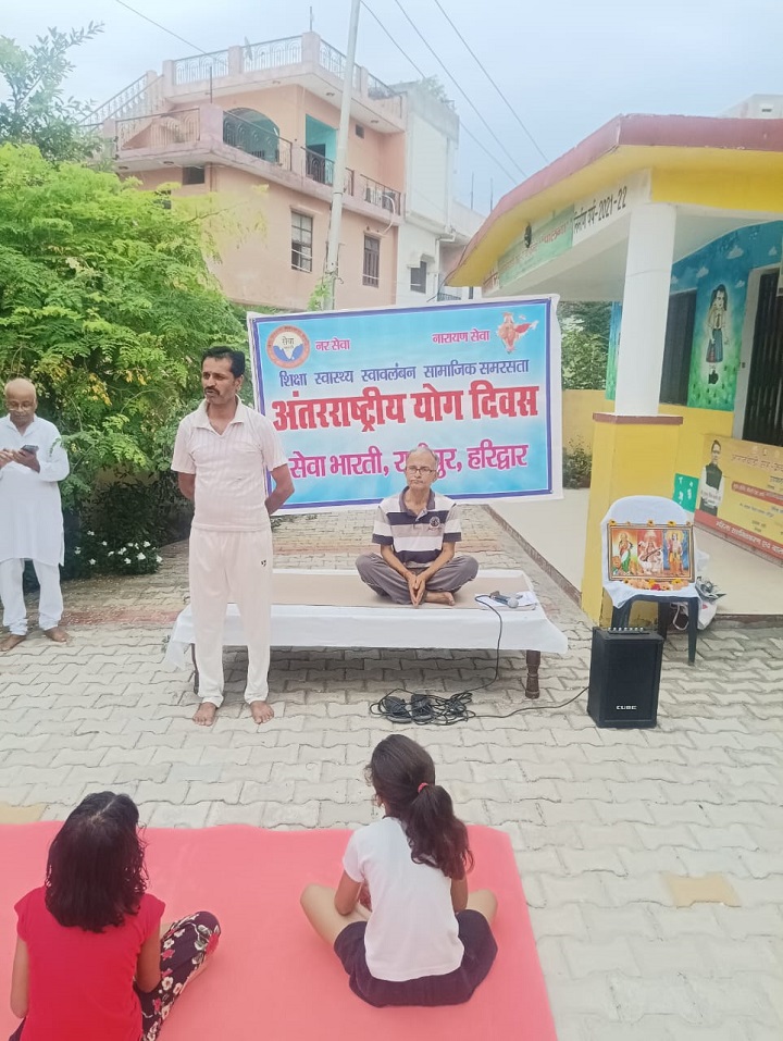 सेवा भारती, रानीपुर, हरिद्वार द्वारा 11वें अंतर्राष्ट्रीय योग दिवस के उपलक्ष में पिछड़ी बस्ती विष्णु लोक में, जहां बी एच ई एल ने झुग्गी झोपड़िया में रहने वाले लोगों को प्लॉट देकर बसाया था, वहां स्थित आंगनबाड़ी केंद्र के प्रांगण में एक त्रिदिवसीय योग शिविर का आयोजन किया। इस बस्ती में इस तरह का आयोजन किसी के भी द्वारा प्रथम बार किया गया। इस शिविर के आयोजन में नगर निगम पार्षद सुनील पांडे जी का विशेष योगदान रहा। बस्ती के सभी निवासियों, महिलाओं, किशोरियों, बच्चों एवं पुरुषों ने उत्साह पूर्वक भाग लिया।