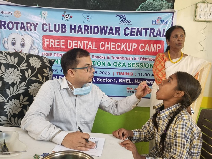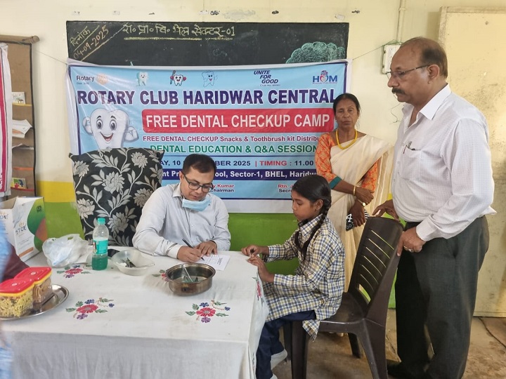 हरिद्वार, रोटरी क्लब हरिद्वार सेंट्रल ने आई एम ए की बीएचईएल शाखा के सहयोग से सरकारी प्राथमिक विद्यालय, सेक्टर-1, बीएचईएल हरिद्वार में विद्यालय के छात्र-छात्राओं एवं स्टाफ के लिए एक नि:शुल्क दंत चिकित्सा शिविर आयोजित किया। इस शिविर का उद्देश्य बच्चों और शिक्षकों में दंत स्वास्थ्य के प्रति जागरूकता फैलाना तथा मुस्कान बिखेरना रहा।