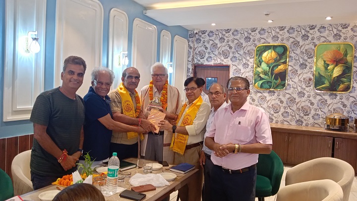 रुड़की- हिंदी दिवस के उपलक्ष्य में देर कल शाम नवसृजन साहित्यिक संस्था रुड़की की काव्य गोष्ठी ‘कविता कारवां’ में विक्रमशिला हिंदी विद्यापीठ के उपकुलपति डॉ श्रीगोपाल नारसन ने हिंदी सेवाओं के लिए वरिष्ठ साहित्यकार सुरेंद्र कुमार सैनी को शाल ओढ़ाकर व स्मृति चिन्ह देकर सम्मानित किया।वही नवसृजन साहित्यिक संस्था की ओर से पांच वरिष्ठ साहित्यकारों सुबोध पुंडीर ‘सरित्’, डॉ आनंद भारद्वाज ,डॉ श्रीगोपाल नारसन ,डॉ घनश्याम बादल एवं कृष्ण सुकुमार सम्मानित हुए। घनश्याम बादल ने अभी तक भी हिंदी को राष्ट्रभाषा का सम्मान ना देने तथा उसके समुचित उत्थान के प्रति संबंधित सरकारों की लापरवाही के लिए अपना आक्रोश जाहिर किया।वही श्री गोपाल नारसन ने बताया कि आठवीं शताब्दी में स्थापित विक्रमशिला हिंदी विद्यापीठ किस तरह से निरंतर अनेक कठिनाइयों के बावजूद हिंदी के प्रचार- प्रसार में अपना योगदान कर रही है। उन्होंने बावन अक्षरों की हिंदी/स्वर- व्यंजन की हिंदी’ कविता भी सुनाई।