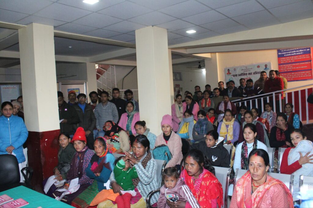इस अवसर पर मुख्य चिकित्सा अधिकारी डॉ. बी एस रावत द्वारा जानकारी दी गई कि स्वास्थ्य विभाग की ओर से एनीमियामुक्त भारत कार्यक्रम के तहत जनपद में 3 से 10 फरवरी 2025 तक पल्स एनीमिया महा अभियान चलाकर सभी गर्भवती महिलाओं की हीमोग्लोबिन जांच की जायेगी। जांच के दौरान हीमोग्लोबिन कम होने पर उन्हें जिला अस्पताल, सीएचसी, पीएचसी में डॉक्टरों की देखरेख में आयरन सूक्रोज का इंजेक्शन दिया जायेगा। मुख्य चिकित्साधिकारी द्वारा बताया गया कि जनपद में आतिथि तक 4742 गर्भवती महिलाएं पंजीकृत हैं जिनकी अभियान के दौरान हीमोग्लोबिन जांच की जायेगी। हीमोग्लोबिन जांच हेतु जनपद के 86 उपकेन्द्रों को स्क्रीनिंग केन्द्र एवं 08 चिकित्सा इकाईयों को एनीमिया उपचार केन्द्र बनाया गया है।