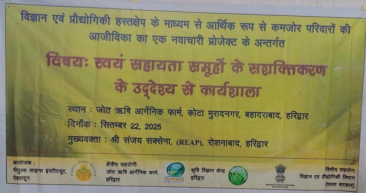 हरिद्वार के बहादराबाद ब्लॉक के कोटा मुरादनगर गांव में, स्वयं सहायता समूहों (SHG) के सशक्तिकरण के उद्देश्य से एक महत्वपूर्ण कार्यशाला का आयोजन किया गया। यह कार्यशाला विज्ञान एवं प्रौद्योगिकी के हस्तक्षेप से आर्थिक रूप से कमजोर परिवारों की आजीविका को सशक्त बनाने के लिए शुरू किए गए एक नवाचारी प्रोजेक्ट का हिस्सा है।